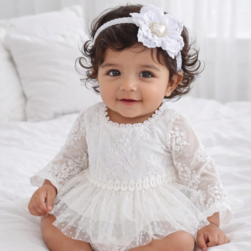 Χαρίστε στη μικρή σας μια ρομαντική και εντυπωσιακή εμφάνιση με αυτό το λευκό βρεφικό tutu φορμάκι με μακριά μανίκια και υπέροχη φούστα, ιδανικό για βάπτιση, πρώτα γενέθλια ή μια ξεχωριστή φωτογράφιση.